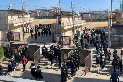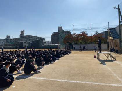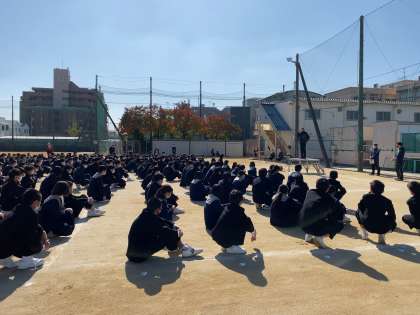 3限終了後、火災を想定した避難訓練を行いました。放送から全校生徒《4分17秒》で整列・集合完了しました。