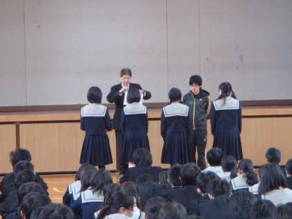 最後に、生活指導の先生より、「バレンタインデーが近づくが、ふだんと同じで、前後の日に学校にお菓子を持ってきて良いということにはならない。持ち込んではいけない。」という注意がありました。