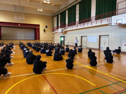 今日は1年生の学年集会がありました。昨年の今頃はまだ小学校6年生、中学生になる自分を想像できなかったのではないでしょうか?時間前に集合し、集会中も担当の先生に真剣に耳を傾ける姿を目の当たりにし、1年間の成長を感じました。