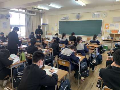 二年生の給食の様子です。 黙食にも慣れてきて、食べ終わった人は宿題を進めています。