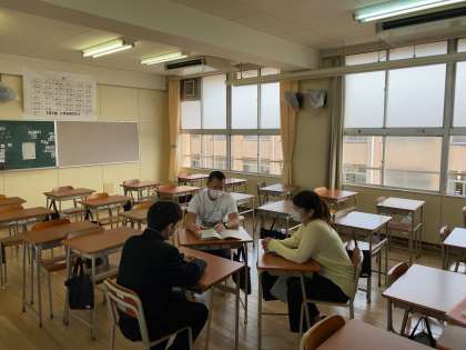 放課後は全学年教育相談がありました。担任の先生と思いを共有できたでしょうか?このような状況なので、ぜひ自分の悩みや将来について、自分の言葉で伝えてください。
