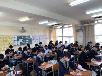 今後このような形で学校生活を行うこともあるかもしれません。ぜひ使い方に慣れて、来たるべき時に備えてください。各教科の課題も毎日ありますが、ぜひ自宅で計画を立て、自学自習を重ねてください。登校後は各学年振り返り学習や小テストを行いました。