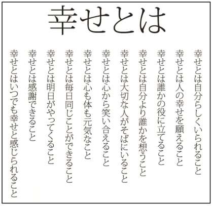 支えてくれている人たちに『感謝』し、何気ない当たり前の時間を『幸せ』に感じて過ごしてください。