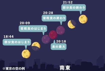 20時9分頃から約20分間、皆既食が見られます。曇っていて見えないかもしれませんが、ぜひ観察してみてください☆