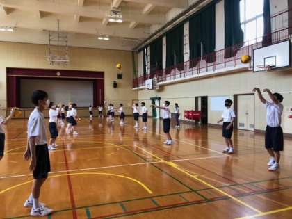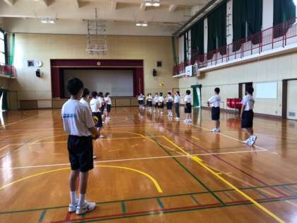 オーバーハンドパスとアンダーハンドパスで、ボールわ繋ぐ練習です。