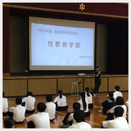 3年生は朝の学年集会に続き、1限に性教育学習を行いました。