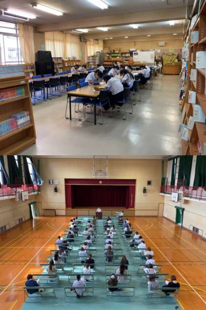 3年生は図書室で数学の自主学習に参加している人がいました。朝早くから10名以上の人が集まり、集中して学習に取り組んでいました。テストに向けて気持ちが高まっているように感じました。