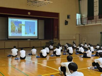 今日は体育館で広島での原子爆弾の投下について勉強し、佐々木禎子さんについての動画を観ました。
