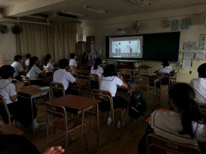 はじめに男女柔道部、男女バドミントン部、吹奏楽部、水泳の表彰がありました。