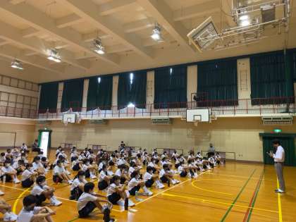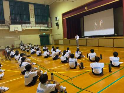 1年生は昨日の6時間目、現在大阪城公園で公演をされている、木下大サーカスの団員『清水海斗』さんにお越しいただきました。