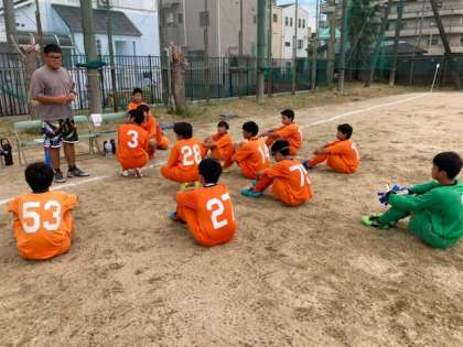 はじめての公式戦ということで、緊張感がある中での試合でしたが、前半15分頃に先制点をとり、その後は落ち着きを取り戻し、自分たちのペースで試合運びができ、10-1で勝利しました。