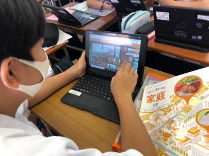 タブレットを使って、楽しみながらも熱心に取り組んでいました。