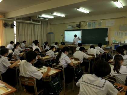 三人称単数現在形の構文を使って、対話の練習をしました。