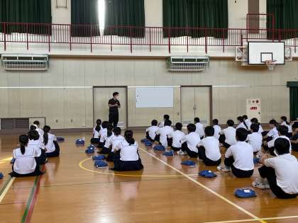 2年生 学年集会の様子です。 言葉がもつ力のお話を聞きました。