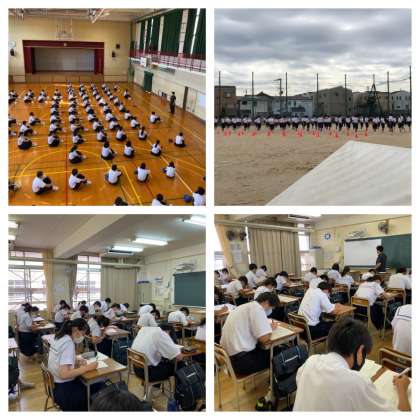 明日は15時30分より体育館で修学旅行説明会を行います。準備の都合のため、15時15分以降にお越しください。尚、ご自宅で検温のうえ、入校証を持参しご来校してください。37.5度以上の発熱や風邪症状等がある場合は、ご来校をお控えください。よろしくお願い致します。
