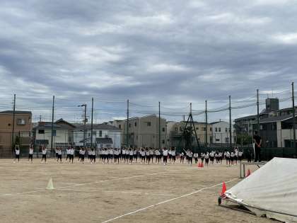 2年生の体育の様子です。 運動会に向けて、ラジオ体操の完成度にも磨きがかかっています。