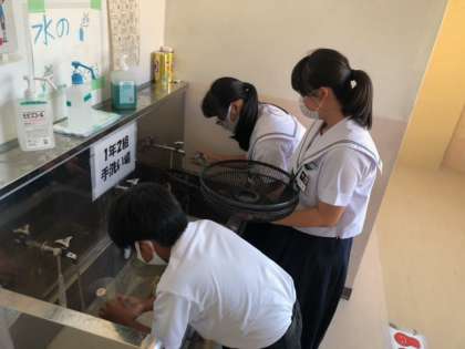 扇風機の掃除、トイレットペーパーの補充など、遅い時間まで、テキパキと作業に取り組んでくれました。