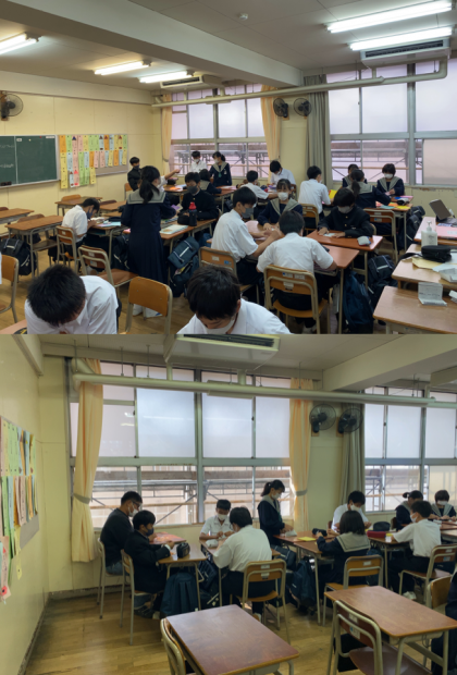 本日3年生は英語能力検査がありました。3時間試験があり大変だったと思います。お疲れ様でした。1、2年生は文化祭の取組が本格的にスタートし始めています。ぜひ学年・学級で協力し、素敵な作品や発表に仕上げてください。よろしくお願いします。