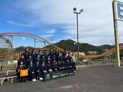 クラスで集合写真を撮り、このあと班ごとに遊園地に入ります!