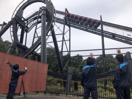 乗り物が苦手な生徒も、仲間が乗っている姿を見て楽しんでいます