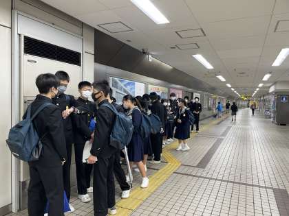 二年生は随時高校訪問に出発しています。 駅での集合の様子です。