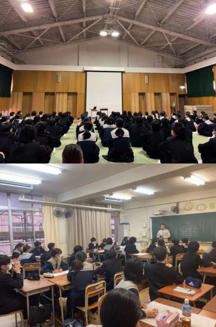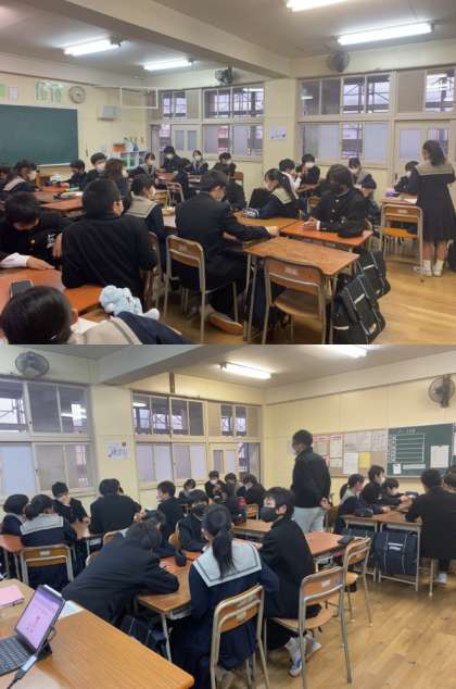 今日は2年生の高校訪問がありました。午前中は私立高校7校、午後は公立高校8校へ班ごとに分かれて訪問しました。寒い中でしたが、それぞれの高校でたくさんの気づきと学びを受けたと思います。ぜひ明日からの学習にプラスになるよう、今回のことを生かしてください。