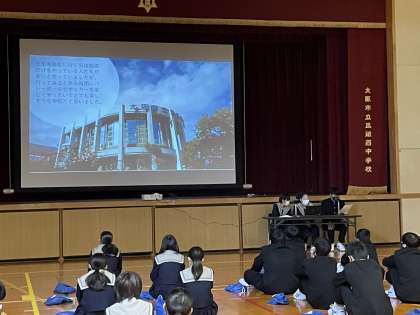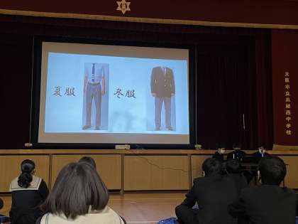 先日の高校訪問で学んだことを、プレゼン係がスライドにまとめて報告しました。
