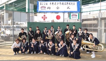吹奏楽部は11日、平野区体育厚生協会・大阪府少年軟式野球協会からのご依頼を受け、『第22回平野区少年軟式野球大会』の開会式に演奏させていただきました。