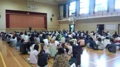 午後5時20分過ぎ、1台目のバスが到着しました。体育館で、帰校式を行い、午後6時すぎに解散しました。