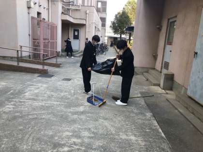 明日の卒業式に向けて、1.2年生は卒業式準備を行いました。