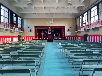 生徒の皆さんは9時10分に運動場に集合完了です。必ず時間に余裕を持って準備・行動してください。保護者の皆様は9時から9時25分までに体育館にお越しください。