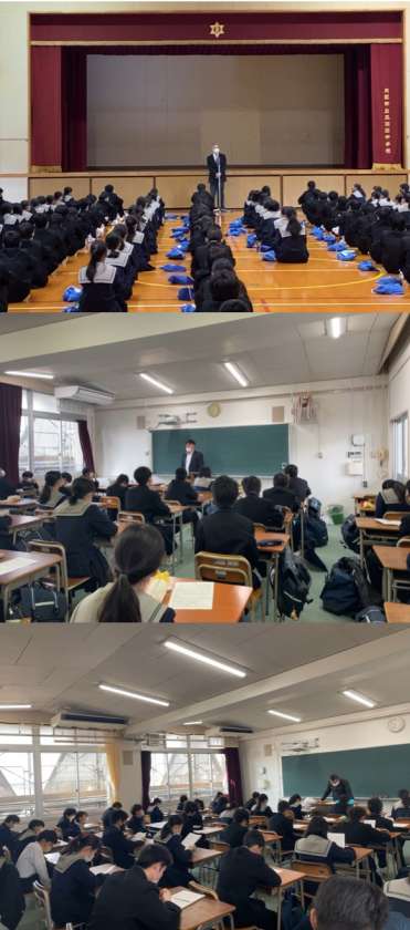 修了式の後、各クラスで最後の終学活がありました。担任の先生やクラスの仲間と過ごした1年間、ぜひこれまでの時間を大切に、次の学年でも頑張ってください。
