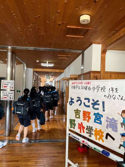 開校式が終わり部屋に移動しています。 この後体育館に移動してプログラム開始です。