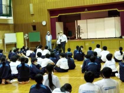 先生がモデルとなり、服装などの間違い探しをしたり、○×クイズ、じゃんけん競争を行いました。
