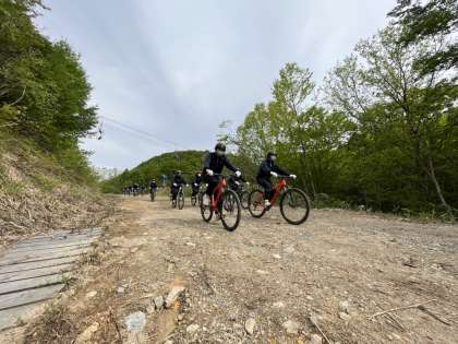 午後の選択体験、マウンテンバイクです。 自然の中をマウンテンバイクで駆け抜けます。