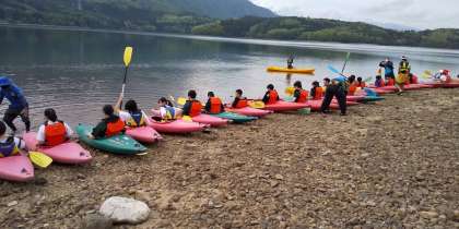午後の選択体験、カヤックです。 青木湖の美しい自然を楽しみました。