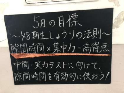 3年生の教室前の廊下に5月の目標が掲示してあります。