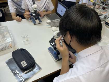 顕微鏡でミジンコの姿を観察して、スケッチしています。