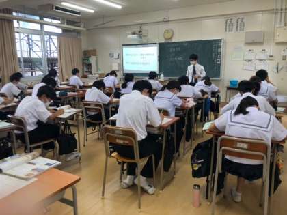 1年生社会の様子です。 教育実習が授業をしています。 古代文明について学習しました。