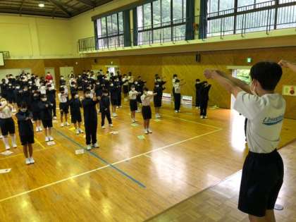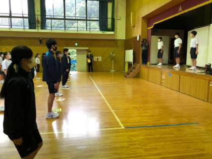 体育委員中心に朝の挨拶、ラジオ体操を行いました。