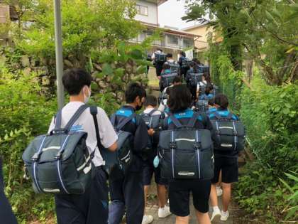 お世話になった施設の方と別れを惜しみながら、瓜破西中学校に向けて出発です。