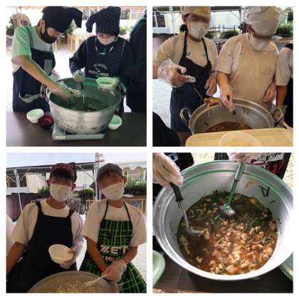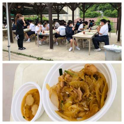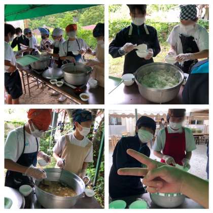 風が強く、紙のお椀が飛んでいきそうになりながら、自然の中での食事の時間を満喫しました。