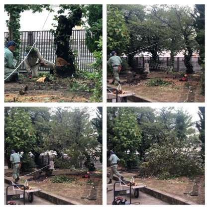 伐採当日の今日、職人の方々や管理作業員さんが、丁寧にかつ迅速に作業をすすめてくれたので、安全に終えることができました。