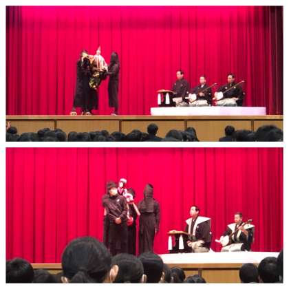 文化庁からの委託事業で文化芸術による子供育成推進事業の取り組みがあり、国立文楽劇場より文楽の方々に来ていただきました。