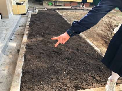 1.2年生から3年生への贈る言葉やメッセージカード贈呈、最後にはみんなで畑にジャガイモの種イモを植えました。