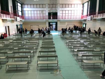 2年生は放課後、明日から始まる3年生の卒業式練習のための会場設営をしました。