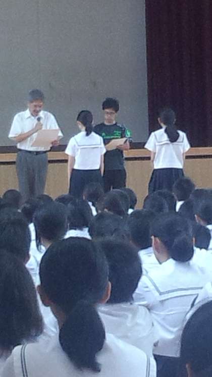 引き続いて、賞状伝達がありました。「バドミントン部・吹奏楽部・女子ソフトテニス部」