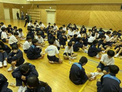 補食の様子です。 メニューはクリームパンとオレンジジュースです。