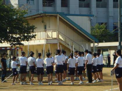 当初、9/25(金)に予定されてましたが、天候やグランド状態が悪く、できませんでした。9/28(月)は、天気も良く、入場行進・開会式・全校体操・閉会式の練習を行いました。学級旗を使っての練習ではありませんでしたが、選手宣誓を含め、一通り行いました。運動会当日にご期待ください。