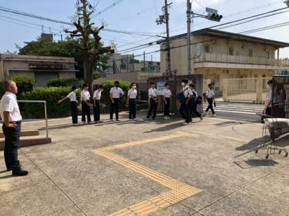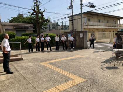 生徒会主催の朝のアイカツ(挨拶運動)の様子です。